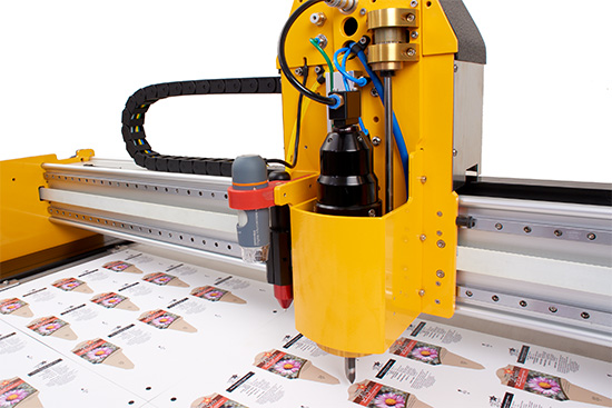 Of course the Elektron B1 Ultra is an industrial strength cutter, built to last which takes all the add-ons and accessories like Cyclops machine vision cameras for pattern alignment and registration, inkjet print heads for order numbers and the quick-change bayonet tool holder takes any tool in Aeronaut's bayonet range.